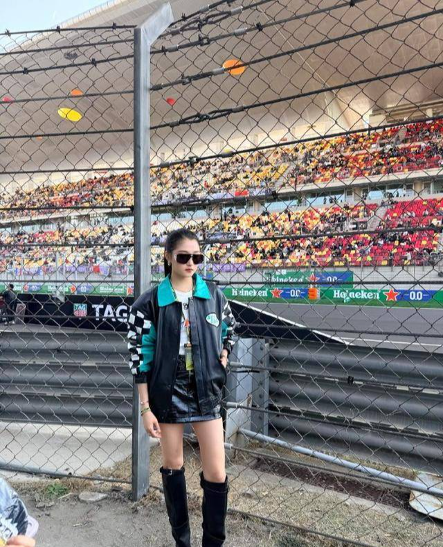 此次F1现场的穿搭,适值收拢了她的体格上风,检朴的短裙加长筒靴,既合适赛事的氛围,又突显了她的青娥感和酷飒气质。